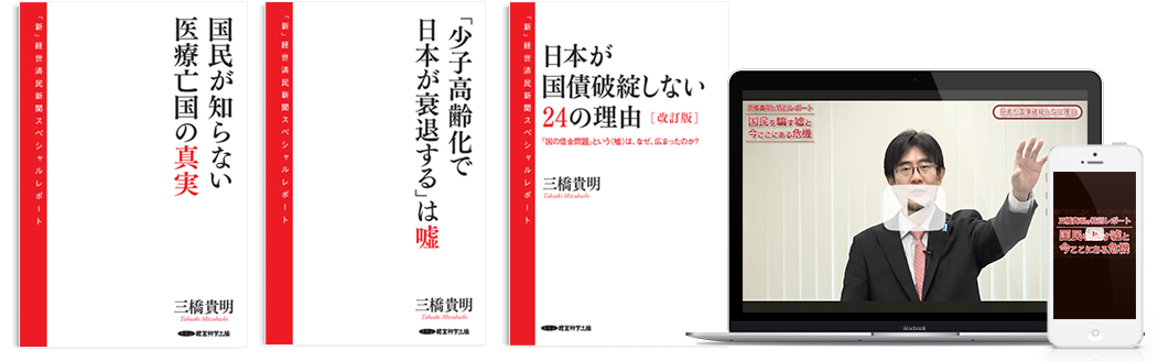 | 国の借金レポート | 3980円→100円 | メンバーサイトにて、解説動画・PDFレポートをご提供 | 月刊三橋で反響の高いテーマをPDFレポートにし、特別価格にてご提供 (※予告無く終了します。) |